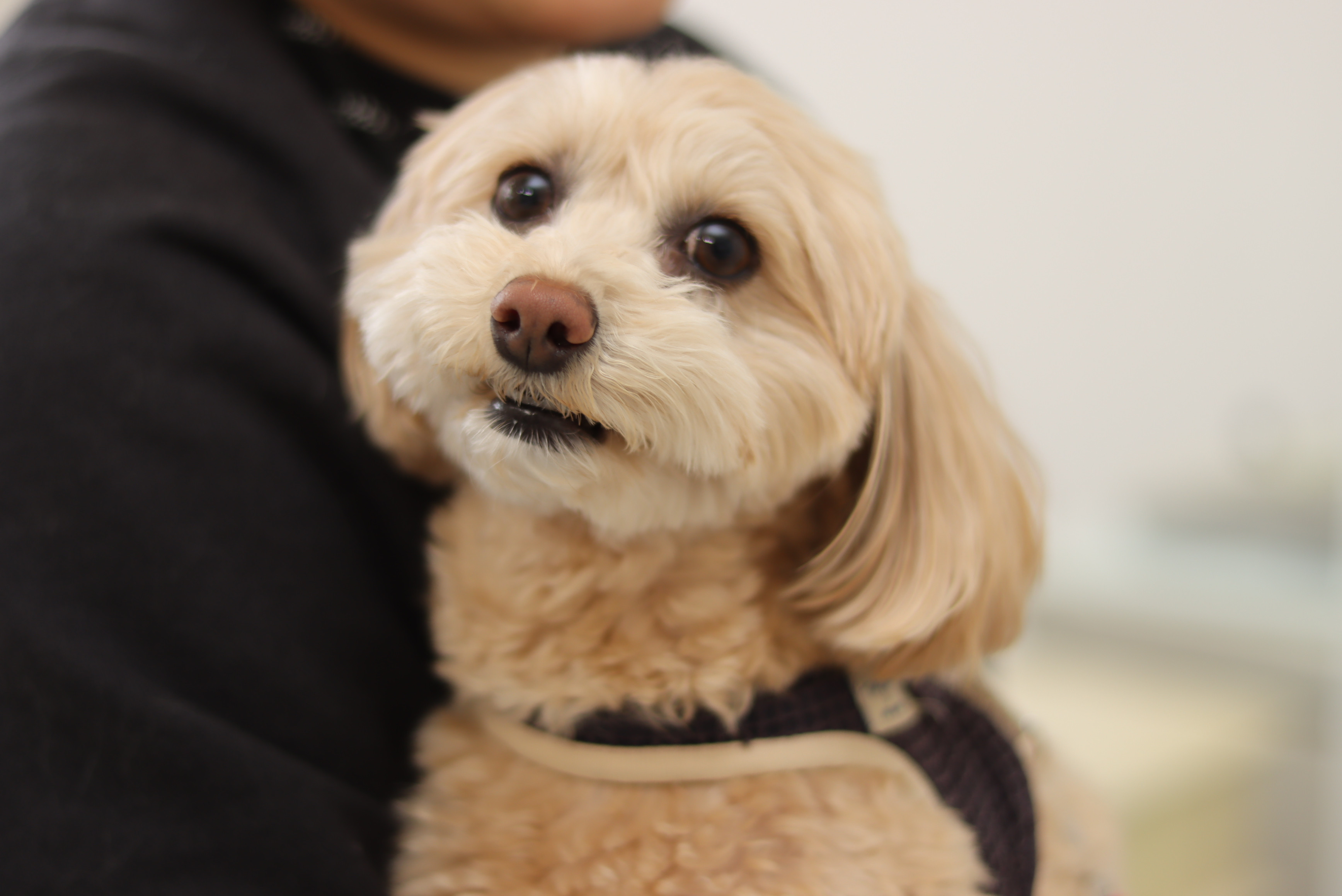 お店でおやつを食べてご機嫌なお顔のサリーちゃんをパチリ。カメラ目線してくれました。