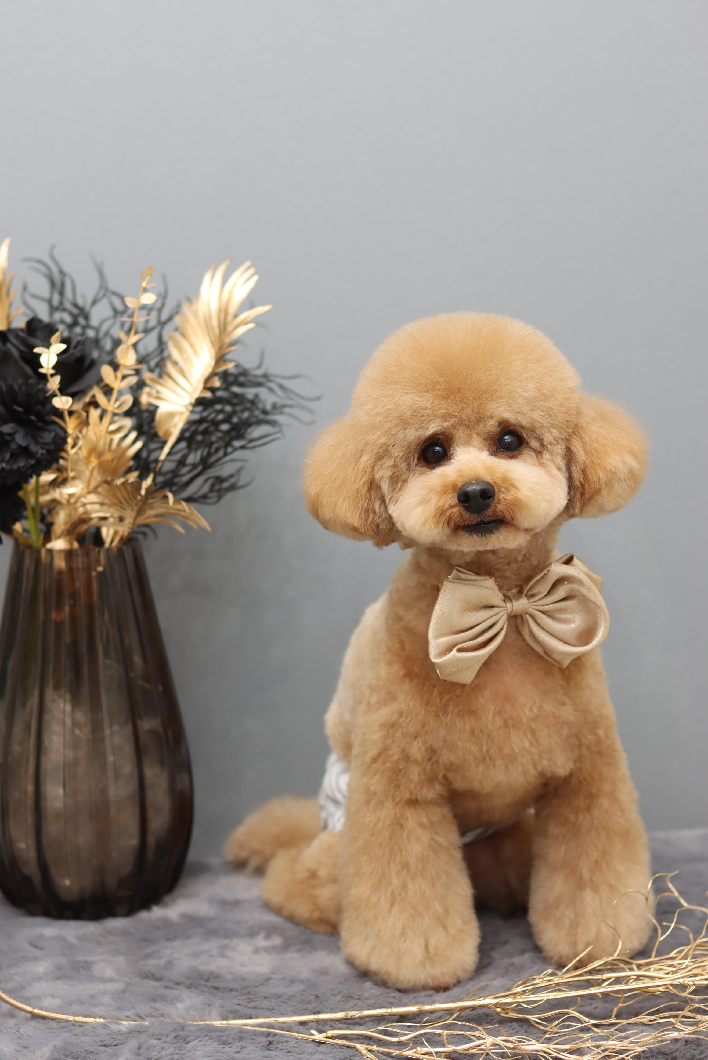 ボディは、お手入れしやすい足の長さでお顔はふんわりスタイルでカットをさせて頂いています。